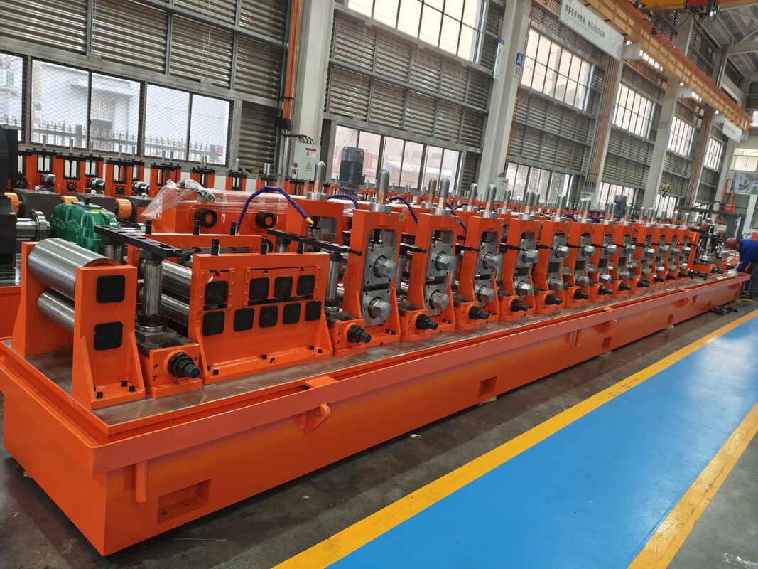 Een buisrolvormmachine is een type industriële machine dat wordt gebruikt om holle, cilindrische buizen of pijpen te produceren uit platte metalen strips of spoelen. Rolvormen is een metaalbewerkingsproces waarbij een continue strook metaal door een reeks rollen wordt gevoerd om deze geleidelijk in de gewenste dwarsdoorsnede te vormen. In het geval van een buisrolvormmachine is het doel om buizen of pijpen te creëren met een cirkelvormige of aangepaste dwarsdoorsnede.
